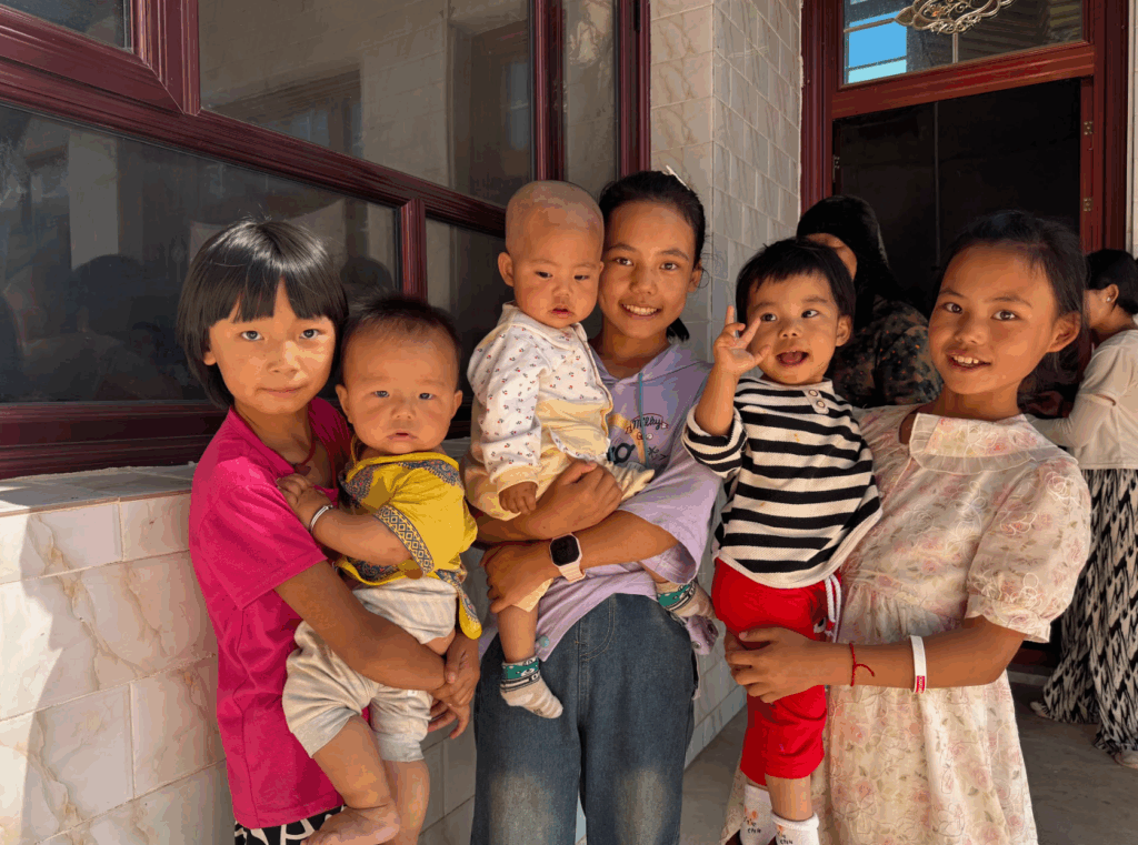 During this trip, we also initiated our partnership with Kaili-based volunteers to begin providing monthly nutritional aid to malnourished children in the village. One family that we visited in particular consisted of 3 children who had just lost their mother to cancer. Their father had to quit his job to take care of them, while the grandmother who also lives with the family is experiencing cognitive decline and difficulty walking. With limited ability to earn income and a one-year-old not yet in school, the family is facing immense hardship. To support families like theirs, our Kaili volunteers deliver eggs, milk, and other nutritious foods to children in the village on a bi-weekly basis.